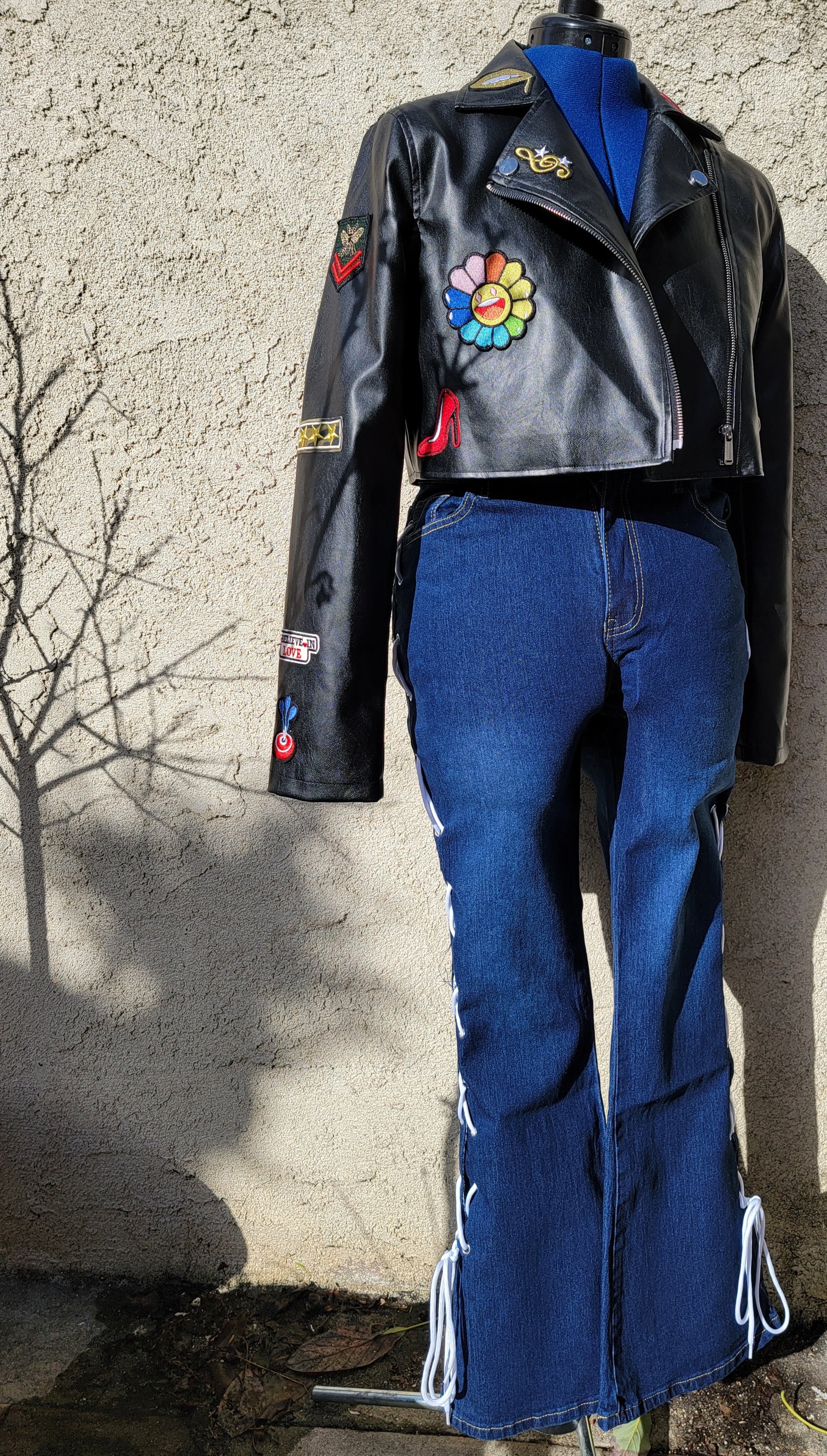 "Stand out from the crowd in CaliGirl's laced flare jeans. The acid wash adds edge, while the lace up detail and patchwork give a stylish girl vibe. The hollow out design adds a flirty touch. Fly zipper for convenience. Perfect for fashion-forward babes."